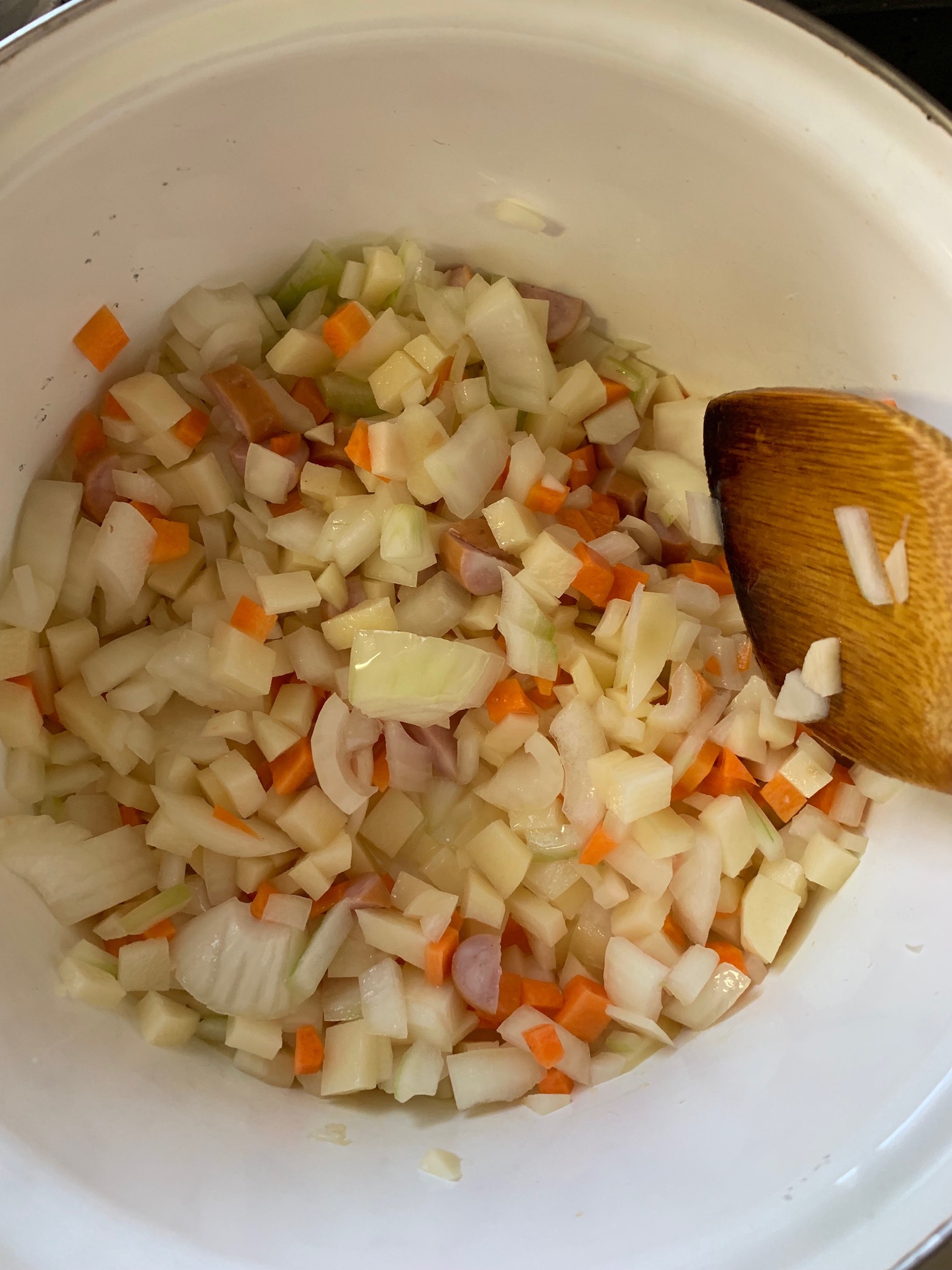 2. ニンジン、じゃがいも、タマネギ、ウインナーは四角く切り刻んでおく。